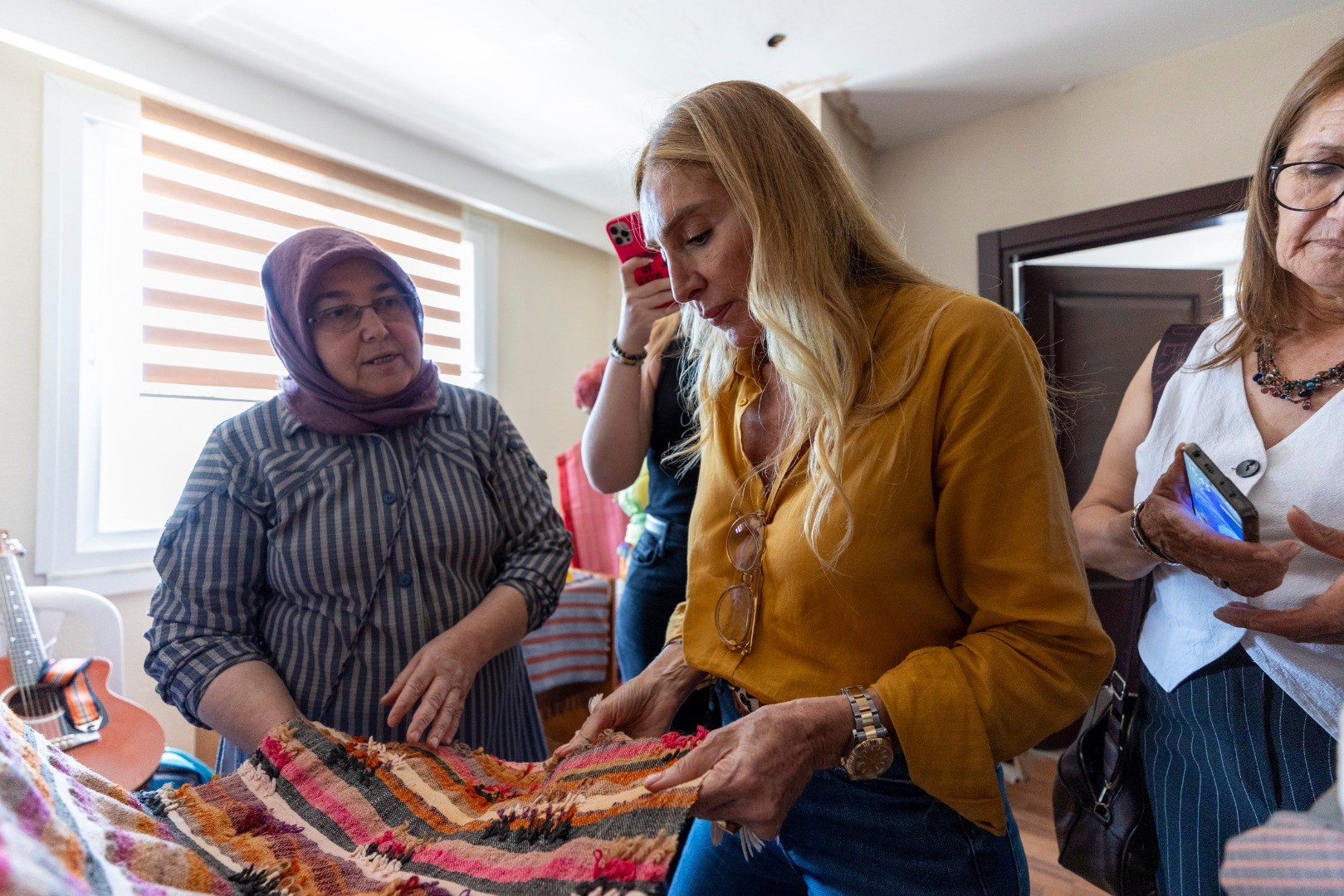 Proje kapsamında; Modacı Dilek Hanif, Mersinden Kadın Kooperatifi Başkanı Meral Seçer ile birlikte, Gözne Kadın Atölyesi’ni ziyaret etti. Atölyede el emeği dokumaları yerinde inceleyen Hanif, rengârenk kumaşlardan sipariş verdi. Her renk ipliklerden dokudukları kumaşların, dünyaca ünlü bir tasarımcı tarafından yeniden yorumlanacak olmasından dolayı heyecanlı olan kadınlar ise emeklerinin kazanca dönüşecek olmasından dolayı duydukları mutluluğu dile getirdi.